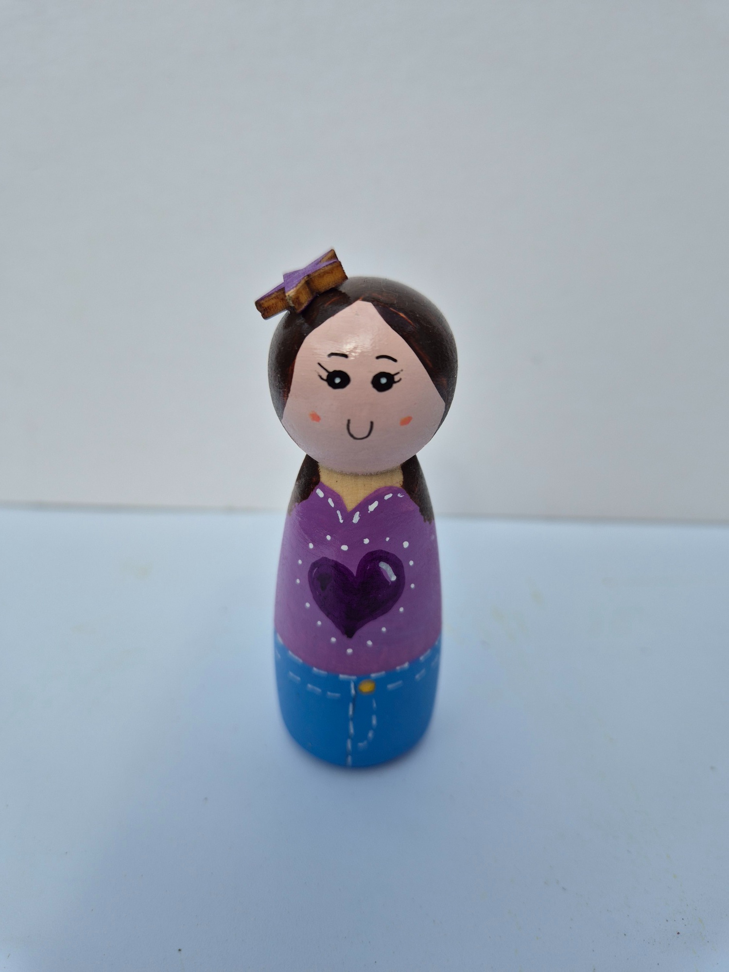 Perfect as thoughtful gifts, these one-of-a-kind dolls can be displayed on shelves or desks. Request a custom design to capture a special person or moment. Every peg doll is a small work of art, ready to brighten your day and become a cherished keepsake.