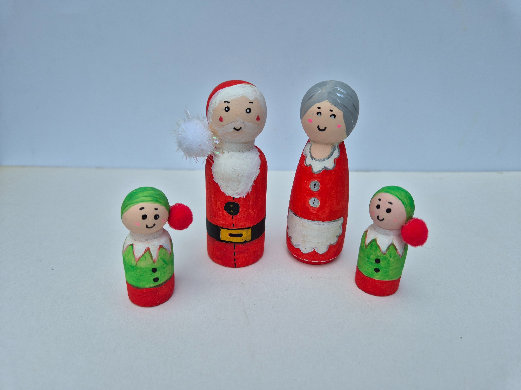 Perfect for decorating mantels, shelves, or Christmas tablescapes, these unique peg dolls also make thoughtful stocking fillers. Featuring classic holiday characters such as Father Christmas, elves, snowmen, angels, and more.